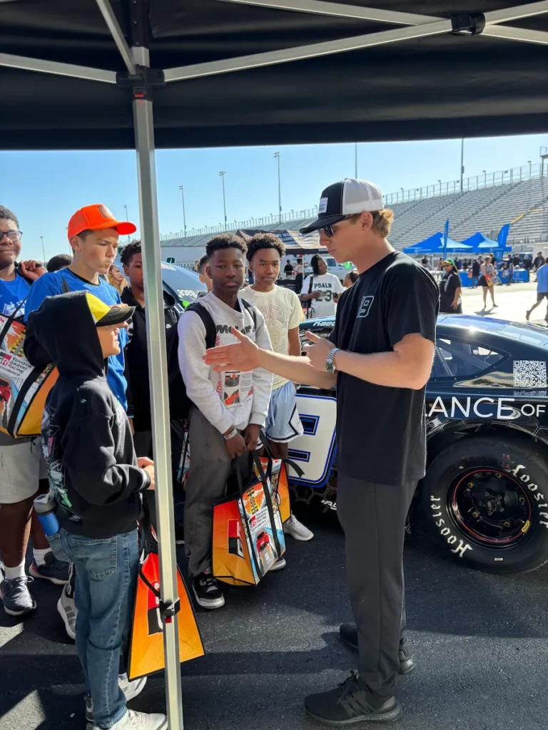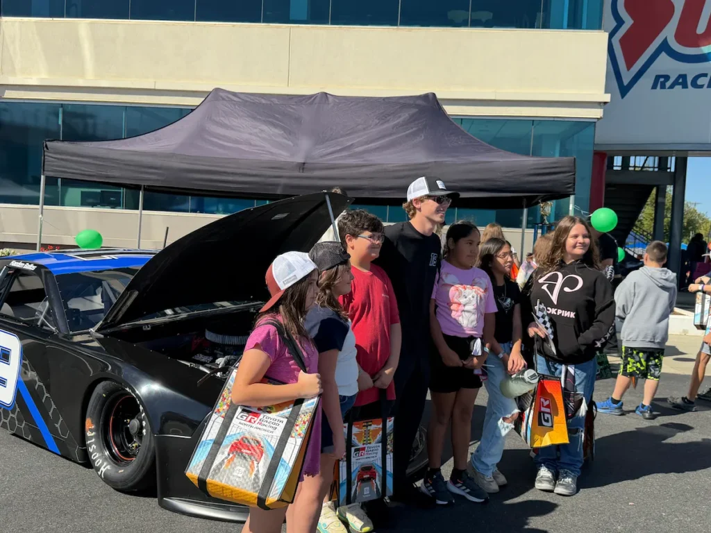 Kaeden leaned into that message all afternoon. He walked kids around the car and broke down what they were seeing: how a race tire builds grip, why brake cooling matters, how a small aero change can help the car turn, and what a crew looks for during pre-race checks. The question he heard most—“How fast does it go?”—turned into quick talks about speed vs. control, safety gear, and respect for the track.
